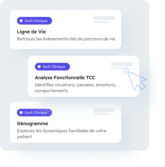 Structurez vos suivis et gagnez du temps grâce à des outils cliniques pensés pour votre pratique.